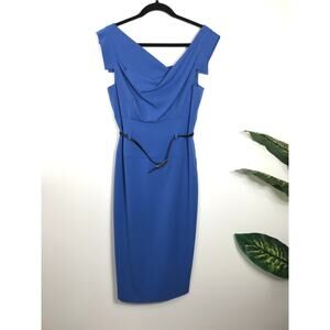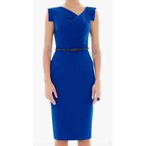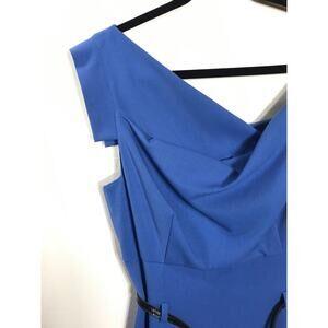 Black Halo Women's 6 Classic Jackie O Sheath Blue Career Dress Belted