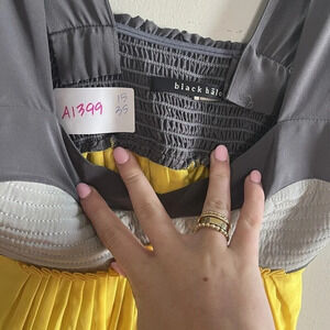 Black Halo Women's XS Silk Mini Dress Gray Yellow Empire Waist Sleeveless