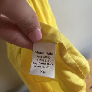 Black Halo Women's XS Silk Mini Dress Gray Yellow Empire Waist Sleeveless.