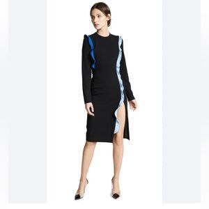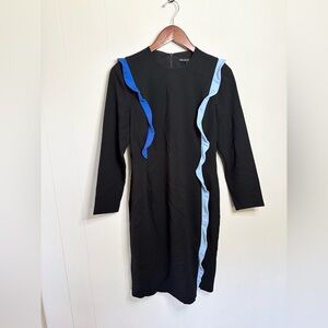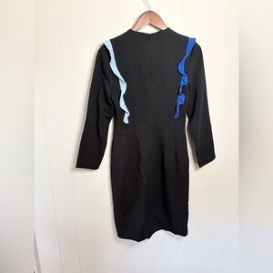 Black Halo black long sleeve blue ruffle dress midi size 6