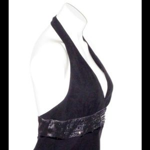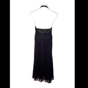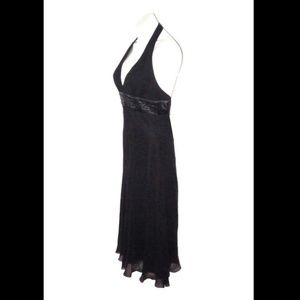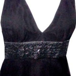 BCBG Paris Black Halter Gown 100% Silk Beaded Detailing Waist Flowy Chiffon Skirt. Every Women needs A little Black Dress!?