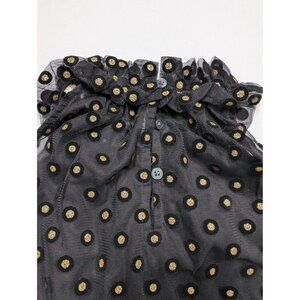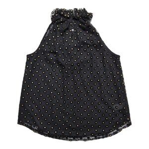Black Halter Neck Polka Dot Top Ruffle Coquette Flocking By Loft Women Small