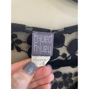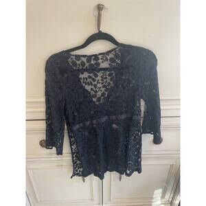 Black Hanky Panky Lace 3/4 Sleeve V Neck Blouse Small