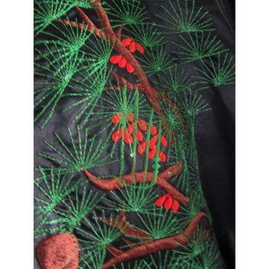 Black Happi Coat Embroidered Cranes Tree Symbols No Labels See Measurements EUC