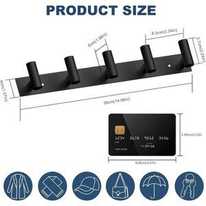 🧿VERSATILE USE: This Black Row Hook Coat Rack with 5 Hooks is suitable for various locations, including bathrooms, kitchens, living rooms, entrances, and offices. Use it to hang towels, kitchenware, coats, hats, jackets, wallets, keys, and more, adding functionality and organization to your space