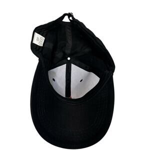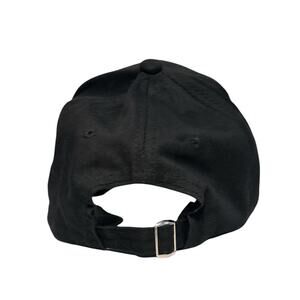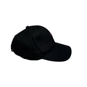 Black Hat with Red Rose. The hat is adjustable in the back (see picture). Made of 100% Cotton. Pre-owned in excellent condition. Never worn, no damage.