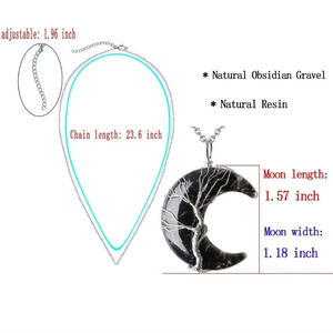 Tree Life Moon Necklace: these elegant healing crystal necklaces are made of natural resin and alloy materials and wrapped with wire, show the tree life shape, represents life, elegance and peace, can bring much power and strength to people
