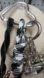 Stylish black heart keychain with silver accents. Features a photo frame charm and braided detail.