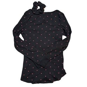 Black Heart Print Women's Shirt and Scrunchie