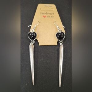 Black Heart Silver Spike Earrings Hypoallergenic Goth Gothic Punk Emo Punk Spiky