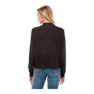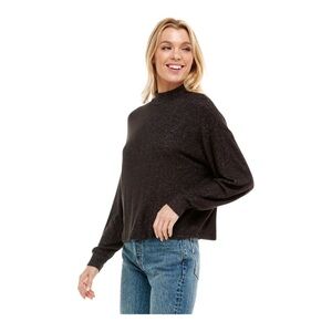 A Versatile Pullover with a Mock Neck makes a perfect layer by LA Boutique Secret Charm in a Black Heather Dropped Sleeve Mock Neck Cropped 22.5” Length Popover Top Size XL