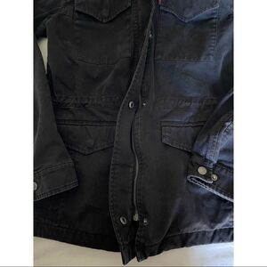 Win the battle against the elements with this military jacket that boast a cozy cotton design and a removable fleece-lined hood.