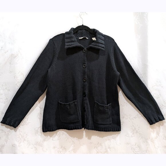 Black Heavy Button Cardigan Sweater 2X Cable Knit Warm Cozy Comfy Cabincore