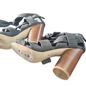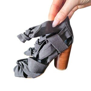 Black Heeled Sandals With Bow Accents & Wooden Block Heel size 9