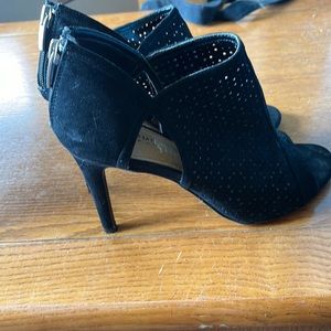 Heeled, zipper on the back. Open toed with cute cut-outs. Size 9. Good condition