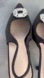 NEW- These black heels feature a striking crystal ornament on the toe, adding a touch of elegance to any formal occasion. The pointed toe and open back with a slingback strap create a chic silhouette, while the light beige insole offers a subtle contrast. Perfect for dressy events, these shoes combine style and sophistication effortlessly.