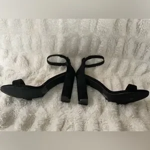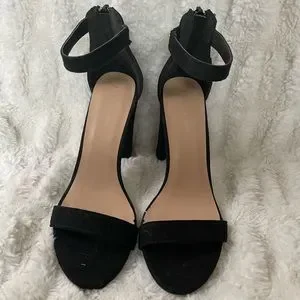 Adorable suede high heel shoes, includes ankle strap and zippers on the backs.
