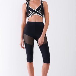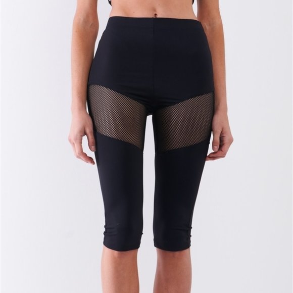 Black High Waist Sheer Mesh Sports Midi Legging Pants