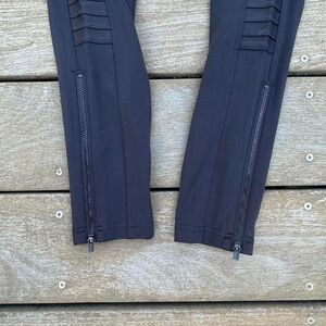 Black High Waisted Athleta Delancy Moto Leggings w/ Zip Ankles and Pockets