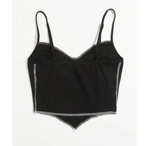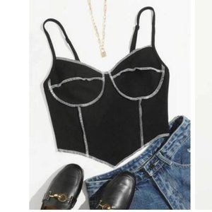 Black High Waisted womens bustier crop cami white stitch top size 1x 2x