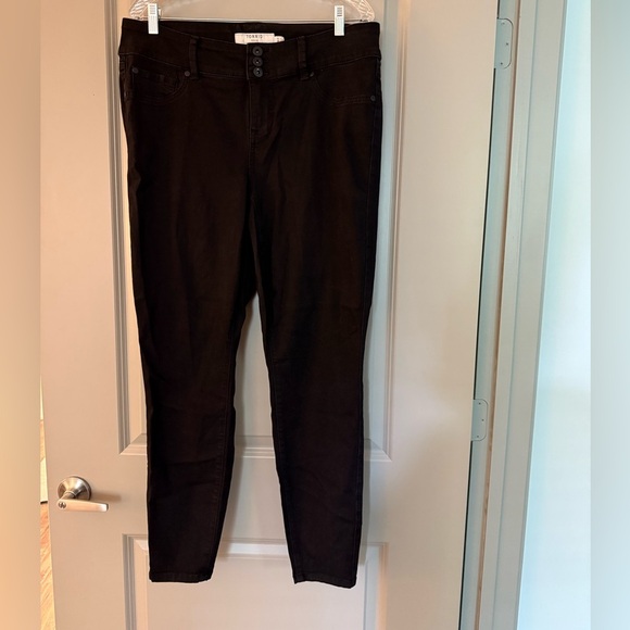 Chic black jeggings with triple button detail. High-waist design for a flattering fit. Size 16Tall. 28 inch inseam B3 0426