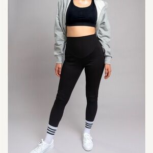 Elevate your style with these sleek black high-waisted maternity leggings. Perfect for any occasion, offering comfort and versatility.