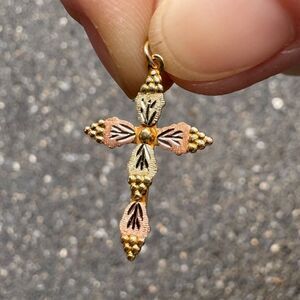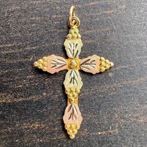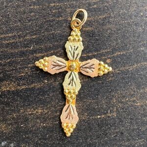 Black Hills Gold 10k Cross Pendant Small Multi Color Grapes Leaves South Dakota