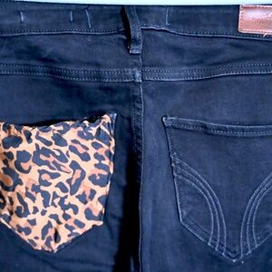 Black Hollister Skinny Jeans – Customized Flares with Pleated Leopard Fabric