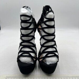 Black Hollow Out Strappy High Heeled Gladiator Sandals with Platform