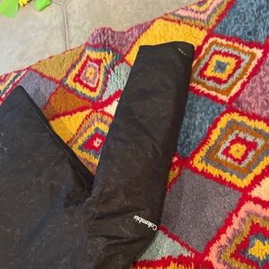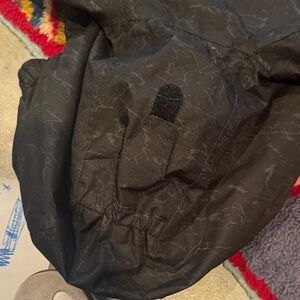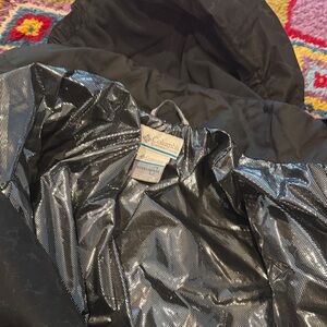 Columbia jacket with a sleek black design. Features a hood and reflective interior lining. Ideal for skiing and warmth…. M size 10/12 Omni tech liner zips out of it’s too hot…fleece lined hood this jacket appears like new no rips stains… excellent find!