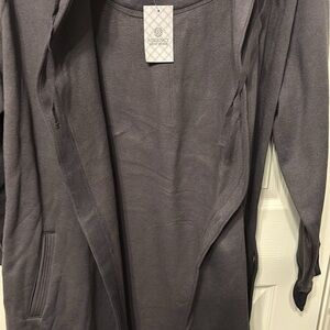 Experience comfort and style with Black Hooded Robe. Perfect for lounging, this robe features a sleek black design and a cozy hood.