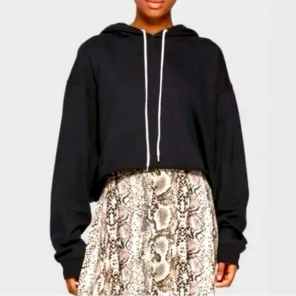 Black Hoodie Cropped Sweatshirt Hooded Sweater Top