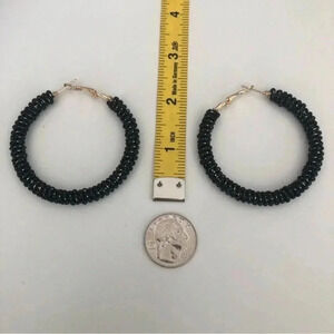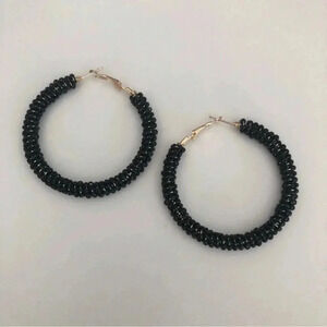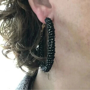 Black Huge Seed Bead Stainless Steel Hoop Earrings NWT
