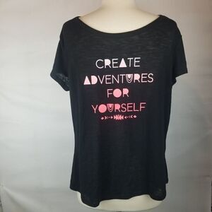 100% rayon graphic tee by Inspired Hearts. Size XL. CREATE ADVENTURES FOR YOURSELF.