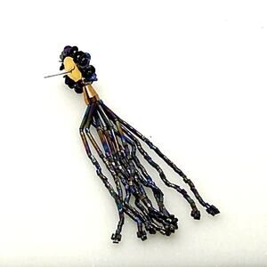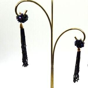 Black iridescent earrings Bead fringe with gold tone cone Sequin and bead top Posts Length: 4"