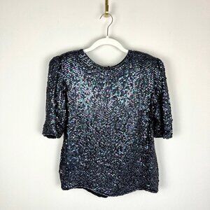 Black Iridescent Silk Sequin top