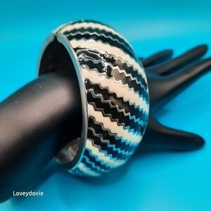 Black Ivory Silver Zig Zag Enamel Hinge Silver Tone Bracelet