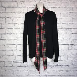NWT! Thin, long sleeve, pullover sweater w/ built in plaid Stewart Tartan scarf. No stains, small stitching is visibly white on sleeve. Style AS302