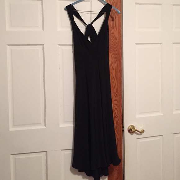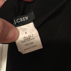 Beautiful black JCrew bridesmaid dress. Fully lined, 100% silk. Back zipper closure. Crisscross back. Very flowy. Falls below the knee and has a slight high-low to it. Purchased brand new and wore 1 time! Excellent condition!
