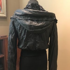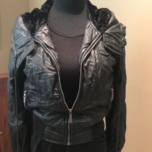 Waist length faux leather and faux fur lined zipper jacket. Excellent condition