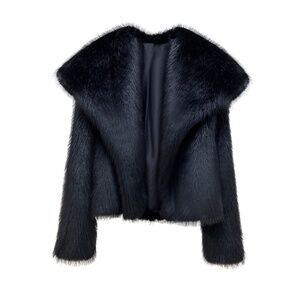 Stay chic and cozy this winter with this fluffy black faux fox fur jacket. Featuring a stylish lapel collar and plush texture, it's the perfect blend of warmth and elegance. Ideal for adding a touch of Korean streetwear flair to your seasonal wardrobe.