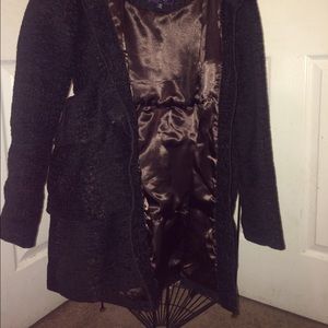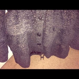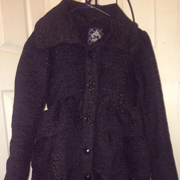 This jacket is in good condition. It has Ruffles towards the bottom of the jacket. Size small