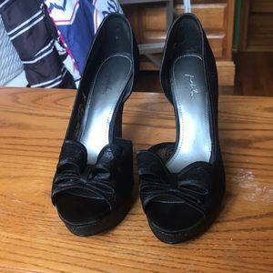 Black peep toe platform heels! Platform and heel has a slight sparkle Worn once for an hour (barely) not my size.