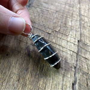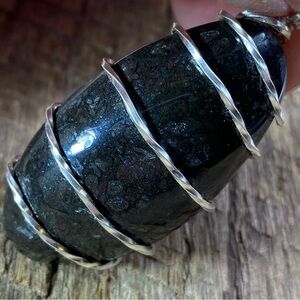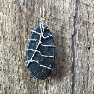 Black Jasper Basanite Oval Twisted Wrapped Necklace Pendant