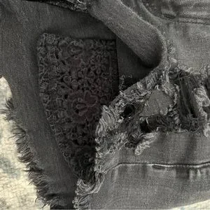 Destroyed black jeans shorts with black lace from pockets