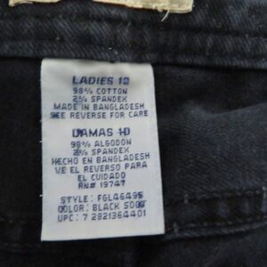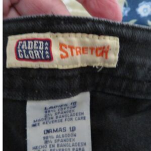 Ladies' stretch denim jeans in black size 10. Brand is Faded Glory. They are cotton spandex in a straight leg style.