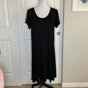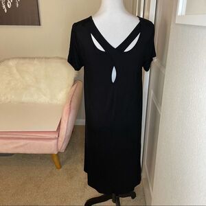 Black Jersey Knit Cross Back Short Sleeve Rounded Neck Pullover Dress Size Small
