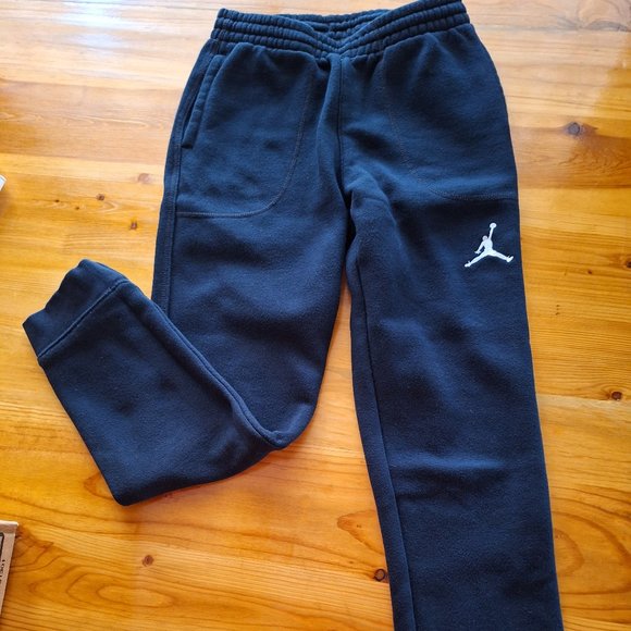 These are thick and warm with ample front pockets. The elastic at waist has lots of stretch, as do the ankle cuffs. Approx measurements: outseam 33", inseam 22.5", (elastic) waist 11.5", hip 16". Tag states 10-12 years 140-152 cm. Some pilling throughout garment. Pet friendly home, but kept in spare room in tub. Wood background is dining table, not the floor.