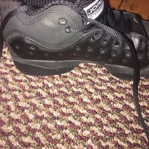 It's all black! It looks exactly like the pictures! They were used a couple times.If you don't like how they look don't buy!They are not dirty or smelly inside the shoe!shoes are easy to clean and I will clean before shipping!