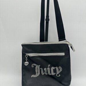 Black Juicy Couture Leather Crossbody Messenger Bag Studded Logo